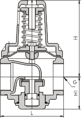 出口壓力下降,彈簧推開隔膜和閥瓣開啟減壓閥。 下游用水(關(guān)閉)時(shí): 主要外形尺寸